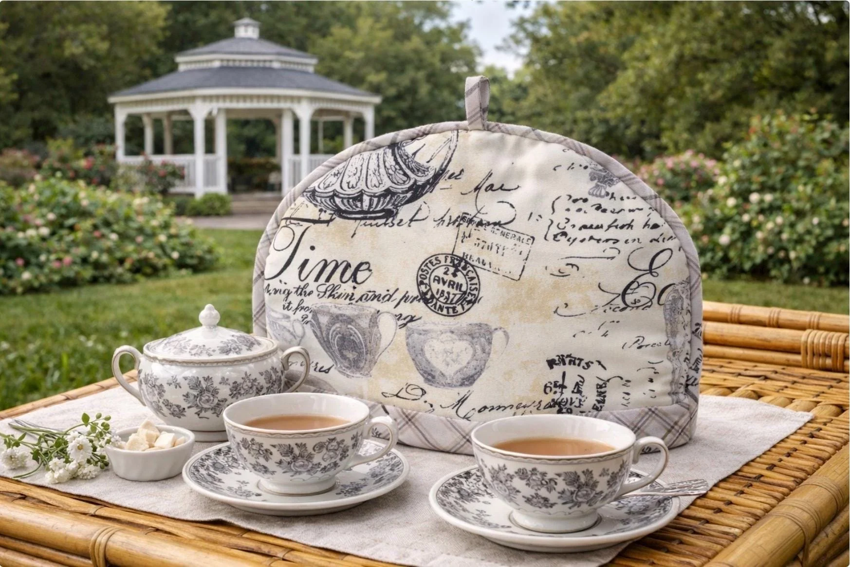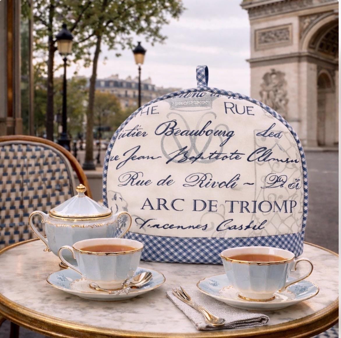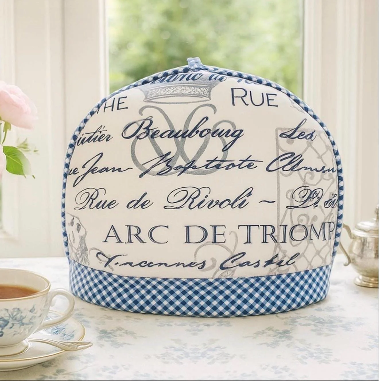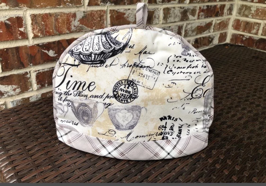 Meticulously handcrafted, this elegant tea cozy is constructed of Waverly decorator premium heavy cotton duck in grey & cream toile with navy accents and adorned with coordinating plaid piping. Filled with a combination of cotton batting and substantial polyfill, this cozy provides excellent heat retention. A perfect accessory to elevate your beloved teatime ritual