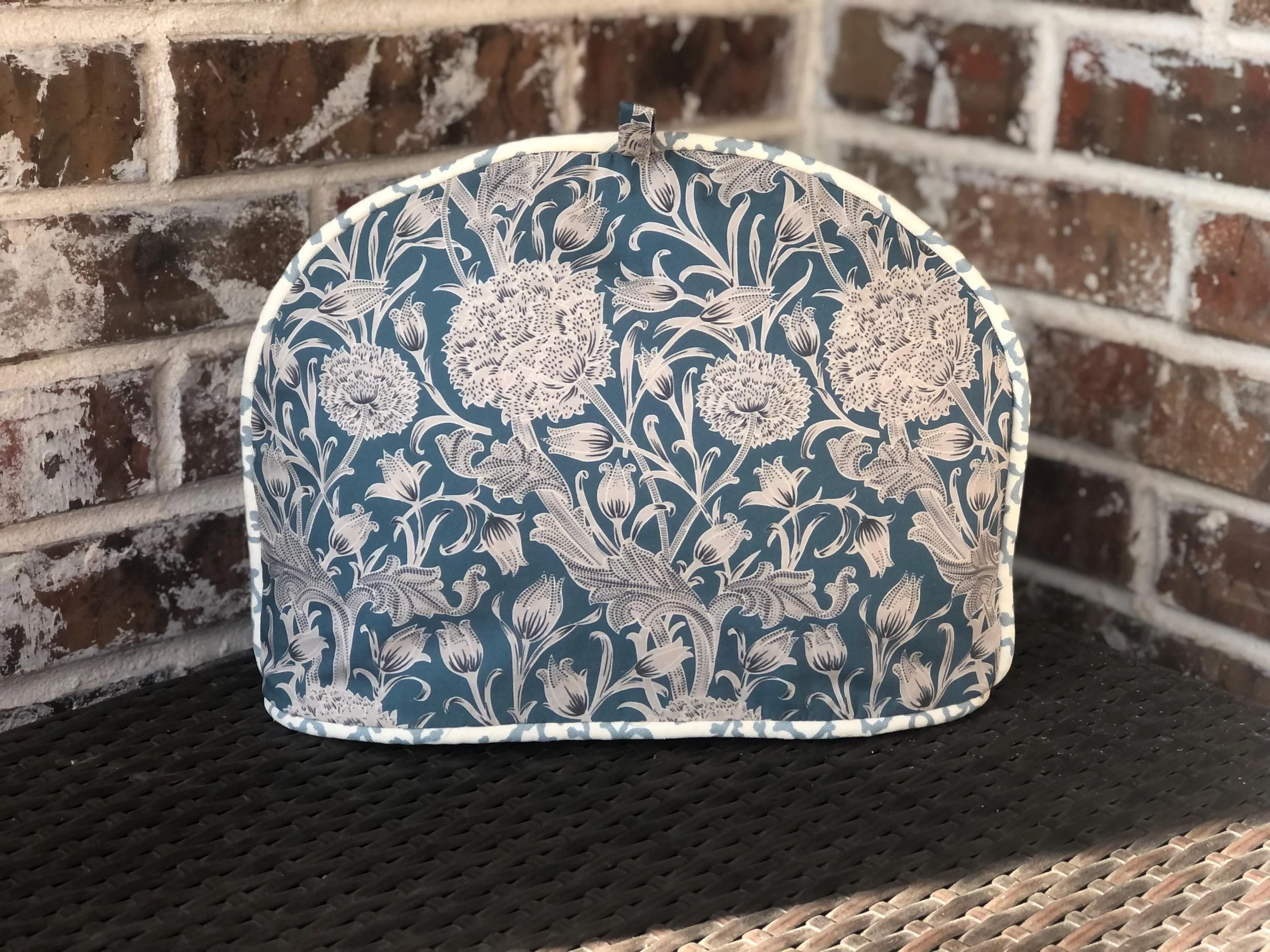 This elegant, meticulously handcrafted tea cozy is constructed of lovely teal William Morris fabric and adorned with coordinated bias cut piping. Plushly filled with substantial poly fiber for insulation, it provides excellent heat retention. A perfect accessory to elevate your beloved teatime tradition!