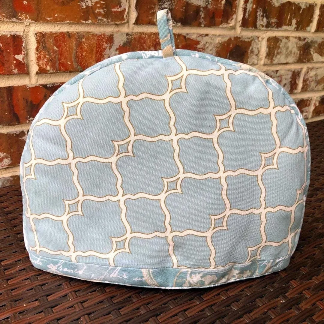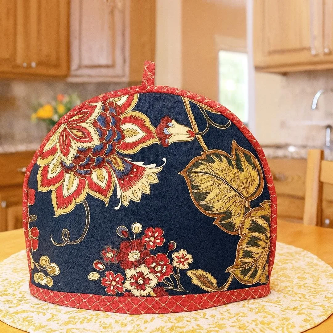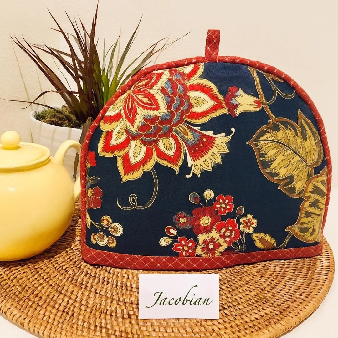 DETAILS Free domestic US shipping! • Handmade by Rebecca in Plano, Texas • Handmade coordinated piping • Approx 13" W x 10" H • Fits up to a 6-cup teapot (48 oz) • Cotton shell • Polyester fill