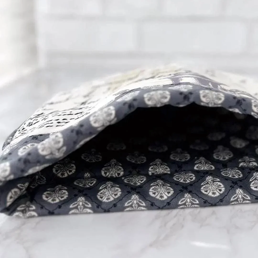 Hand crafted with special care, this elegant cozy is constructed of cotton duck in grey & cream toile with substantial poly fill. The coordinated handmade piping upgrades this cozy from average to extraordinary.